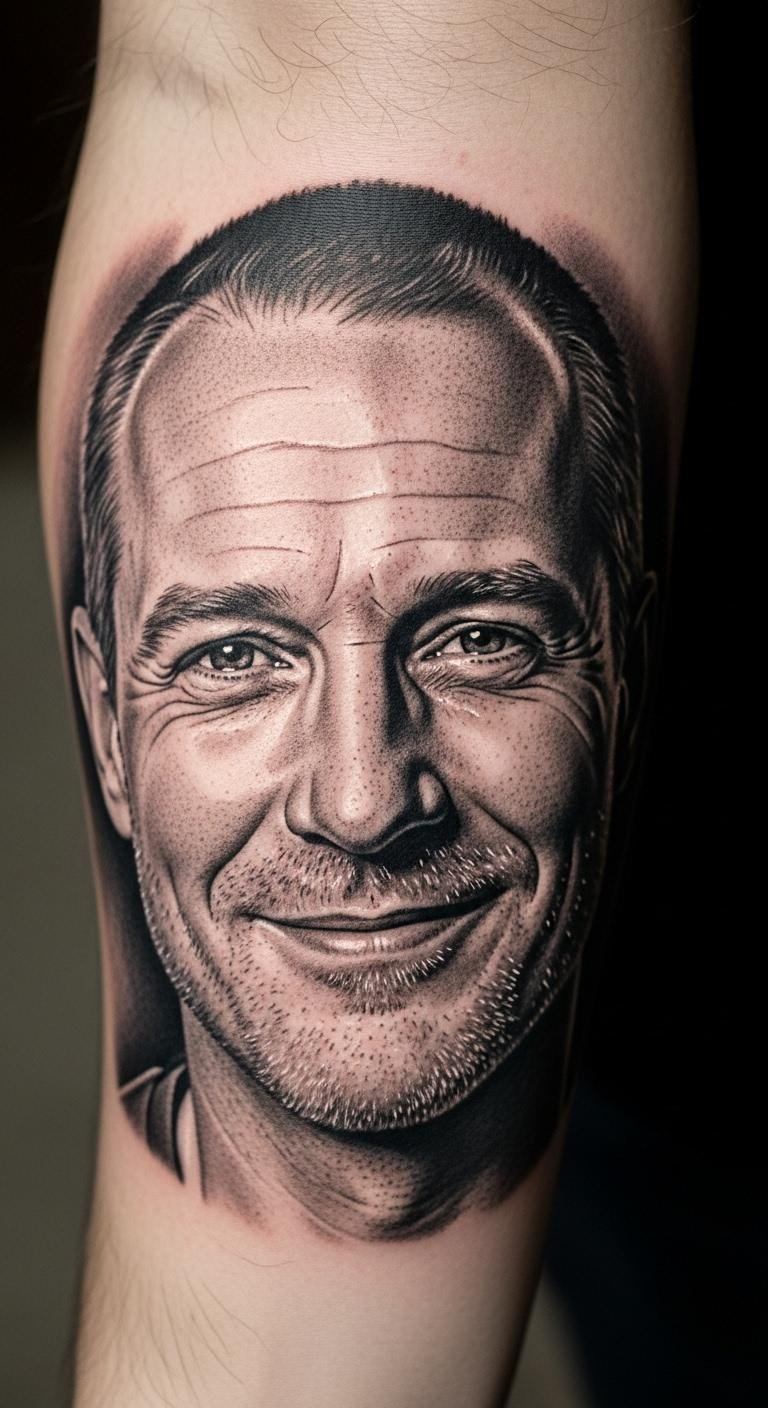 This tattoo serves as a constant reminder of the bond shared with the loved one depicted, symbolizing love, connection, and cherished memories.