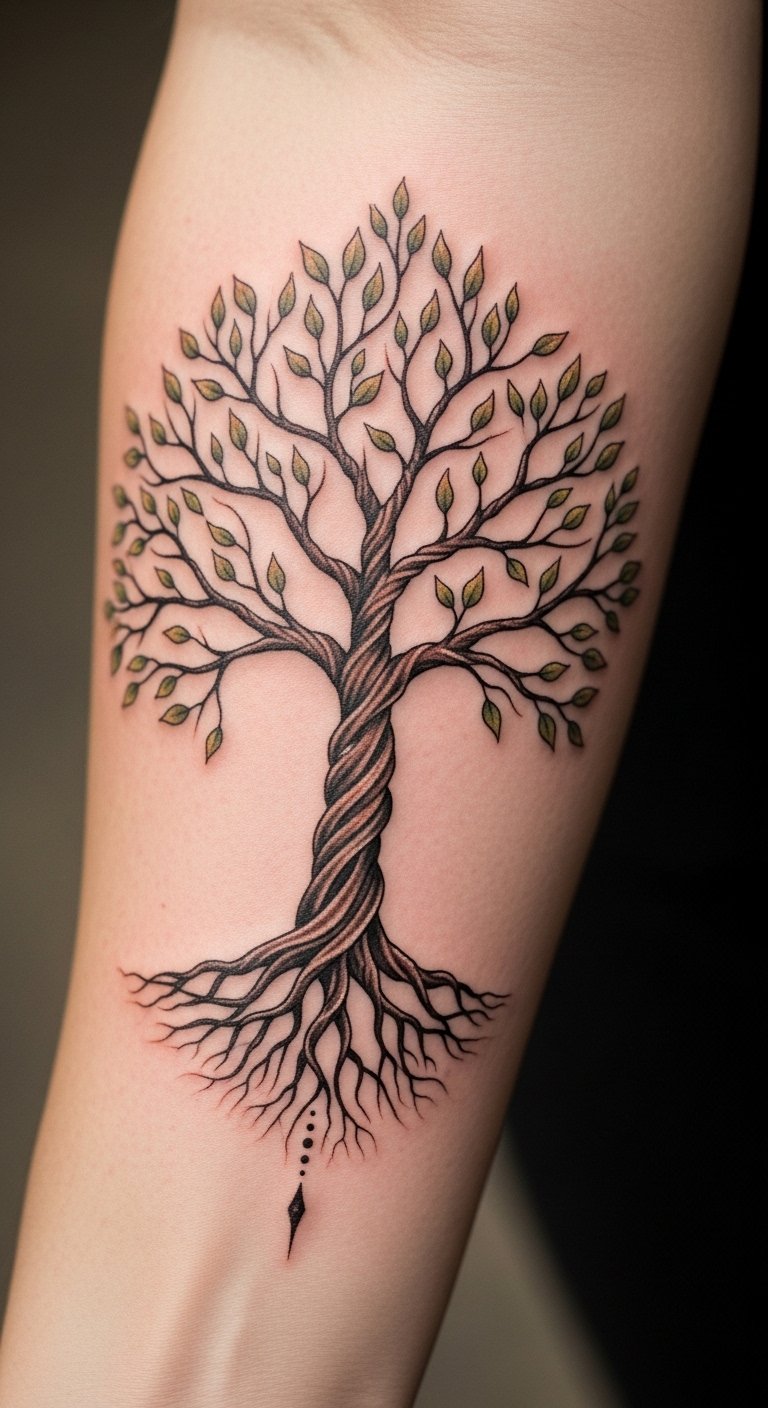 Placed on the forearm, this design serves as a daily reminder of one’s roots and strength, inviting reflection on the shared experiences that enrich the spirit.