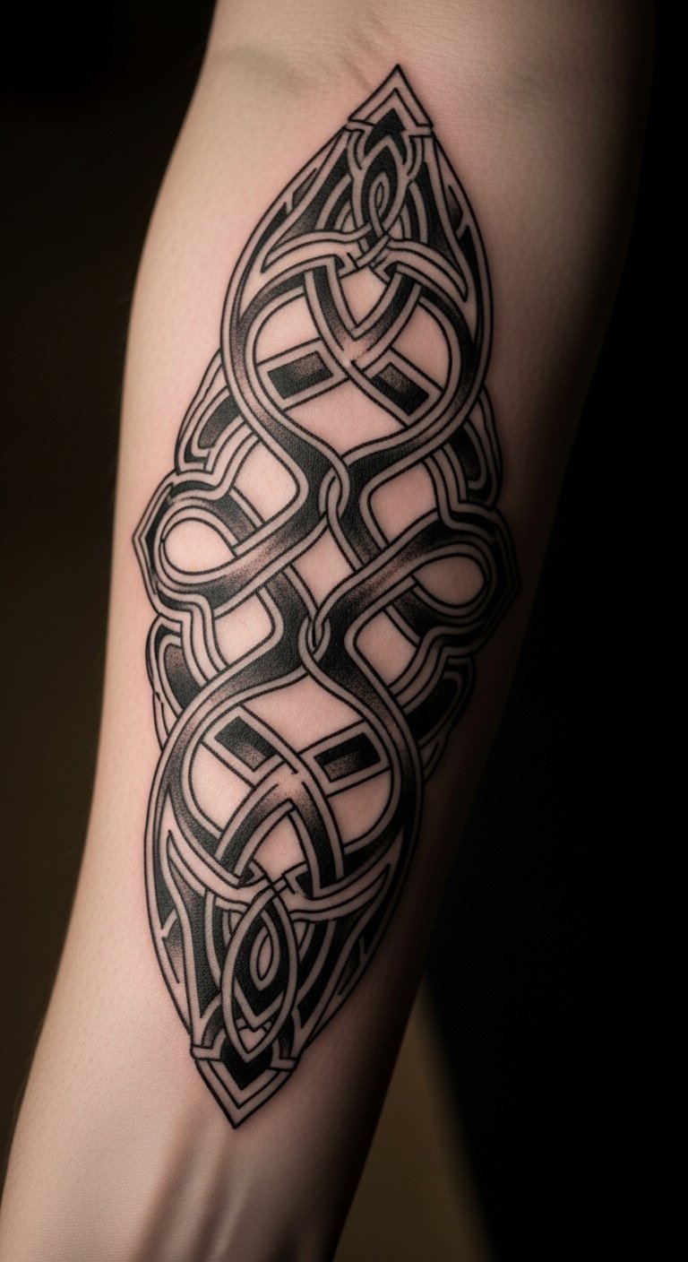 The Celtic knot tattoo on the forearm embodies the essence of eternal cycles and connections in life. Its placement on the forearm makes it easily visible, inviting admiration and sparking conversations about its rich heritage.
